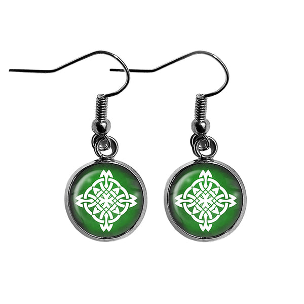 Celtic Knot Circle White on Green Surgical Steel Earrings.