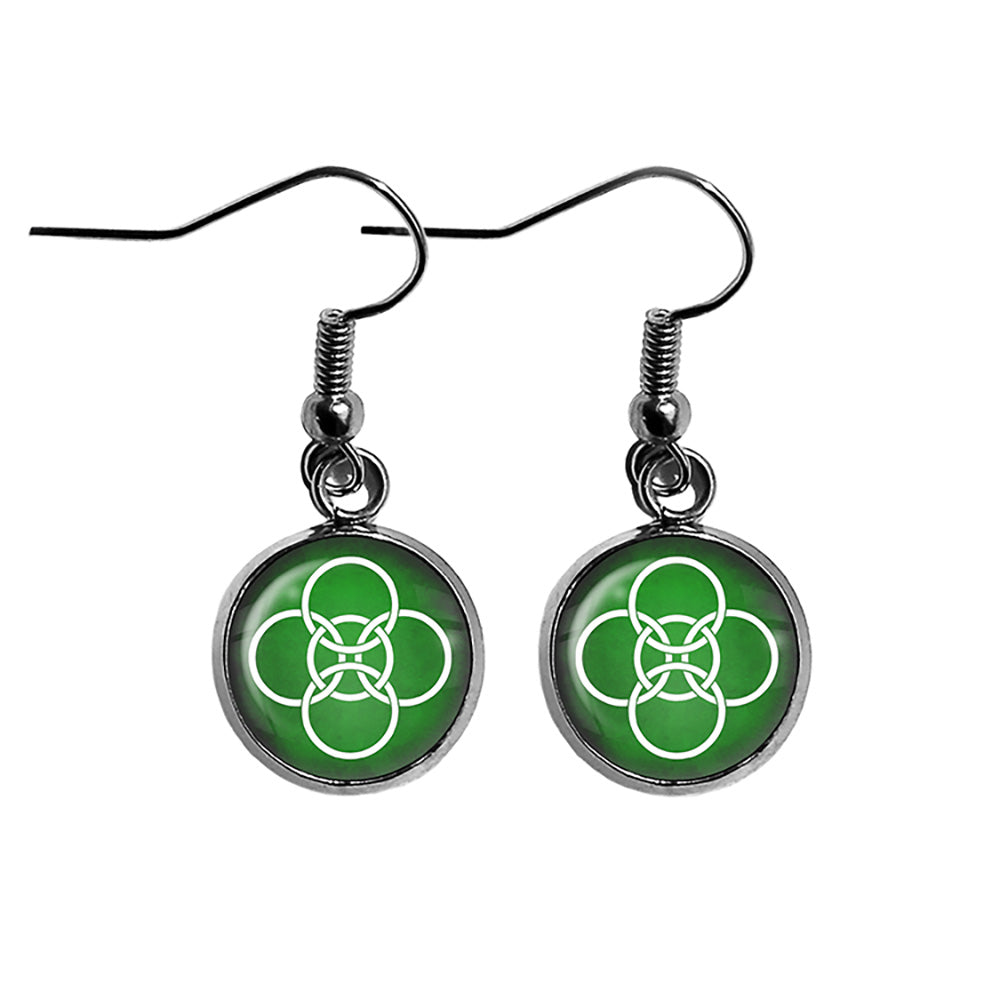 Celtic Symbol Celtic Symbol Five Fold Circles White on Green Surgical Steel Earrings
