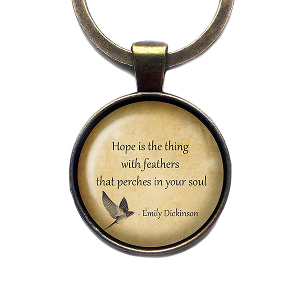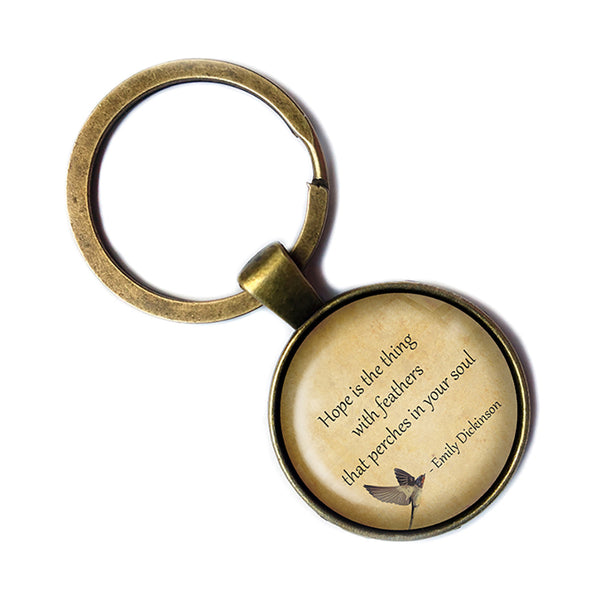 Emily Dickinson Hope is a Thing with Feathers Perches in your Soul Bronze Keychain
