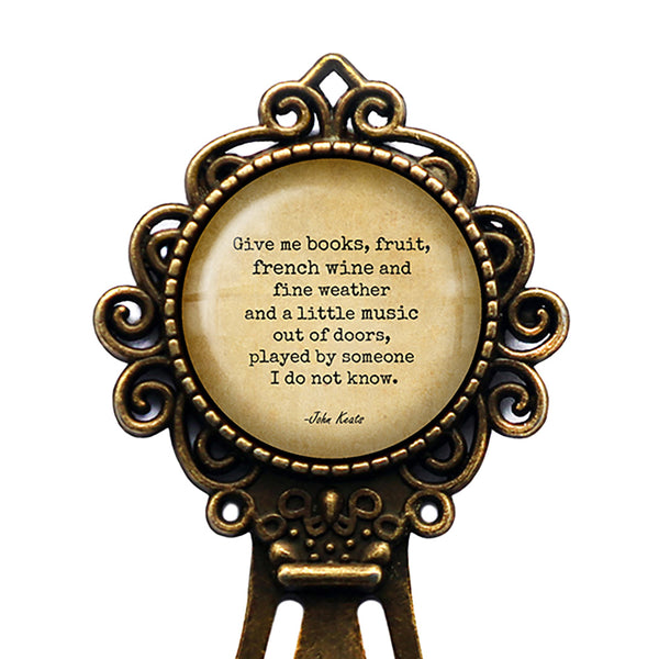John Keats "Give me books, fruit, french wine and fine weather and a little music out of doors, played by someone I do not know." Bronze Bookmark.