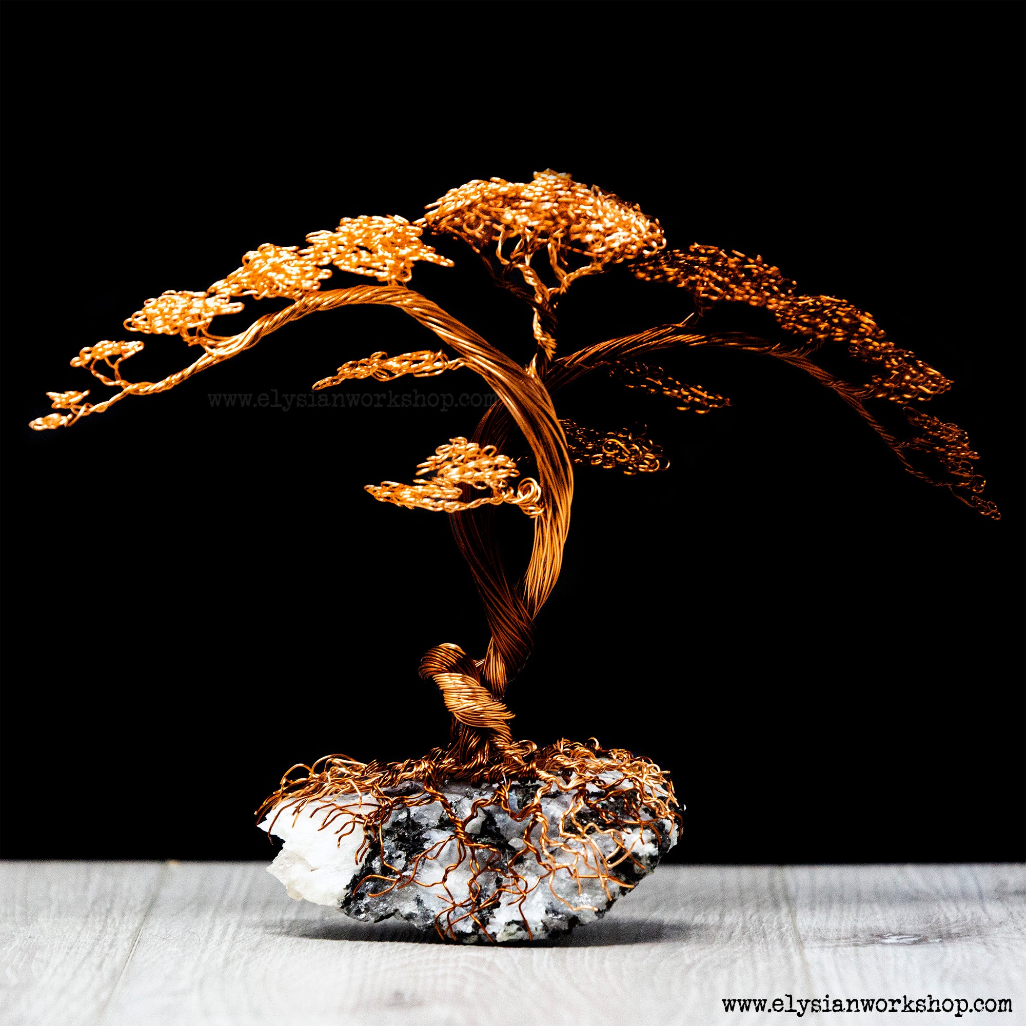 Large Copper Wire Twin Cascade Trees Silver and Copper on a Rainbow Moonstone Crystal