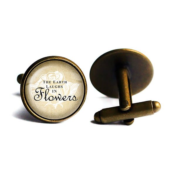 Ralph Waldo Emerson The Earth Laughs in Flowers Antique Bronze Cufflinks