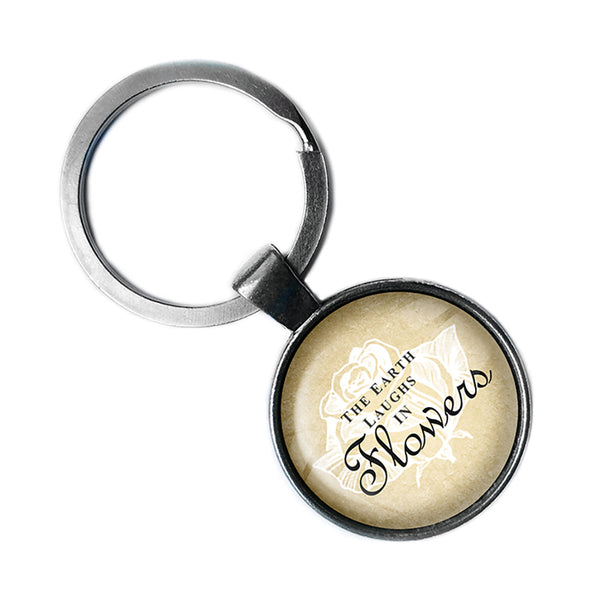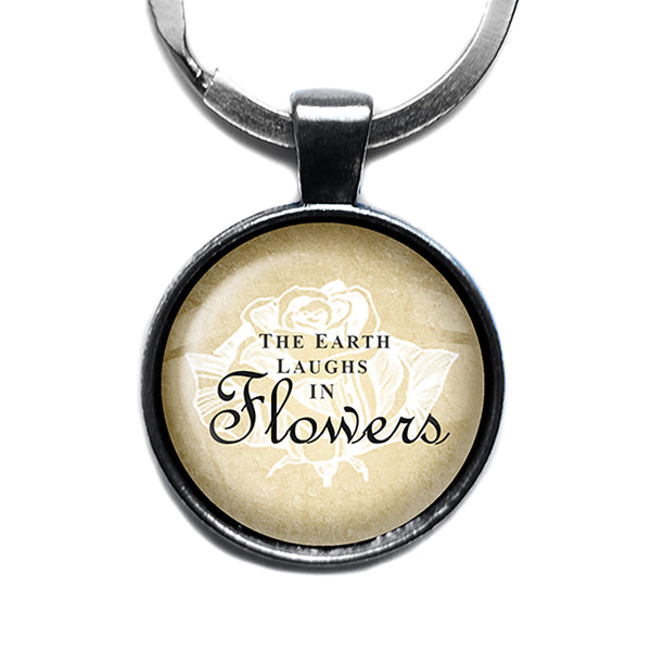 Ralph Waldo Emerson The Earth Laughs in Flowers Antique Silver Keychain