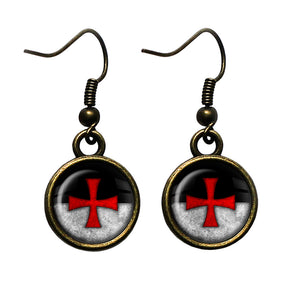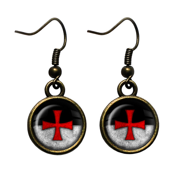 Worn Knights Templar Battle Flag Standard Antique Bronze Earrings